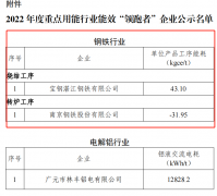 按照《工业和信息化部办公厅国家发展改革委办公厅市场监管总局办公厅关于组织开展2022年度重点用能行业能效“领跑者”企业遴选工作的通知》(工信厅联节函〔2022〕285号)要求,经企业申报、地方推荐、专家评审,确定了2022年度重点用能行业能效“领跑者”企业名单,现予以公示。公示时间为2023年1月10日至2023年1月19日(公示期10天)。如有异议,请在公示期内将书面意见反馈至工业和信息化部(节能与综合利用司)。