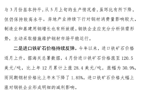 中钢协:5月份以来,钢材价格止跌趋稳