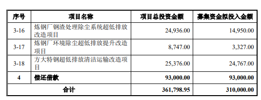 (三)超低排放环保改造项目本项目所述18个子项目主要根据国家生态环境部等五部委联合发布的《关于推进实施钢铁行业超低排放的意见》(环大气〔2019〕35号)文件要求,对公司主要生产环节(含原料场、烧结、球团、炼焦、炼铁、炼钢、轧钢、自备电厂等,以及大宗物料产品运输)实施升级改造,大气污染物有组织排放、无组织排放以及运输过程满足排放控制指标要求,属于指导目录中“鼓励类”之“八、钢铁”中“10、钢铁行业超低排放技术,以及副产物资源化、再利用化技术”的范畴。