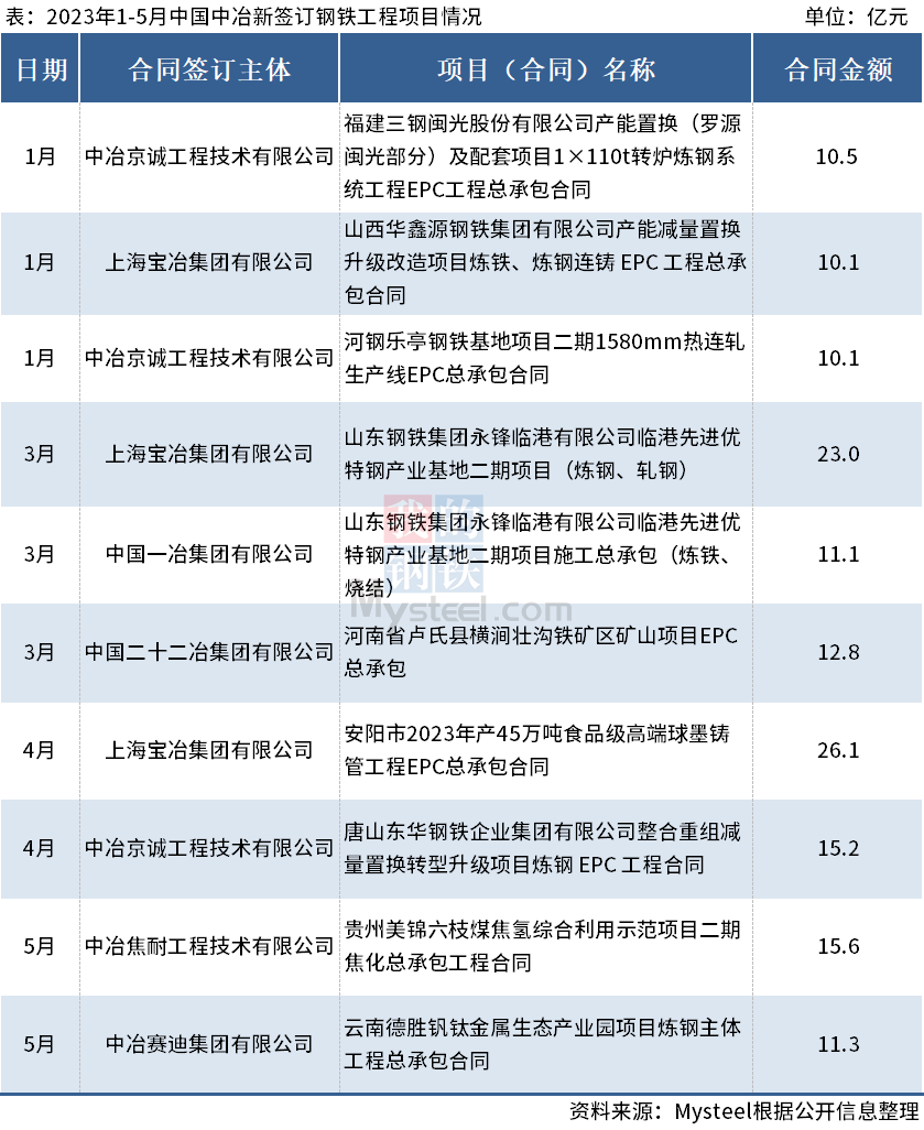 Mysteel:1-5月中国中冶签订10个钢铁项目,金额145.8亿元
