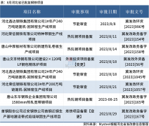 Mysteel不完全统计,2023年8月河北省共批复钢铁相关项目8个,分别是3个节能审查、4个热轧钢项目备案【变更】和1个外商投资项目备案【变更】。