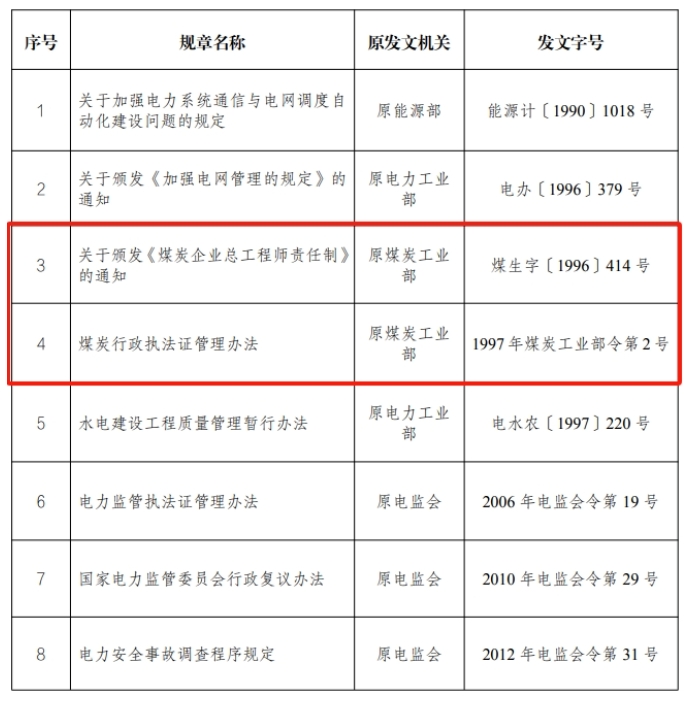 《煤炭企业总工程师责任制》等两件煤炭相关规章废止
