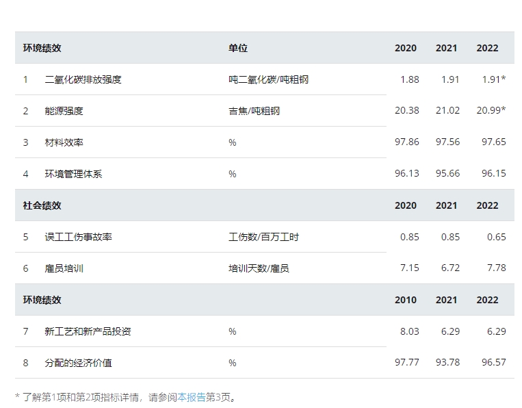 世界钢铁协会采用8项指标衡量钢铁行业在经济、环境和社会可持续发展领域的关键绩效表现。