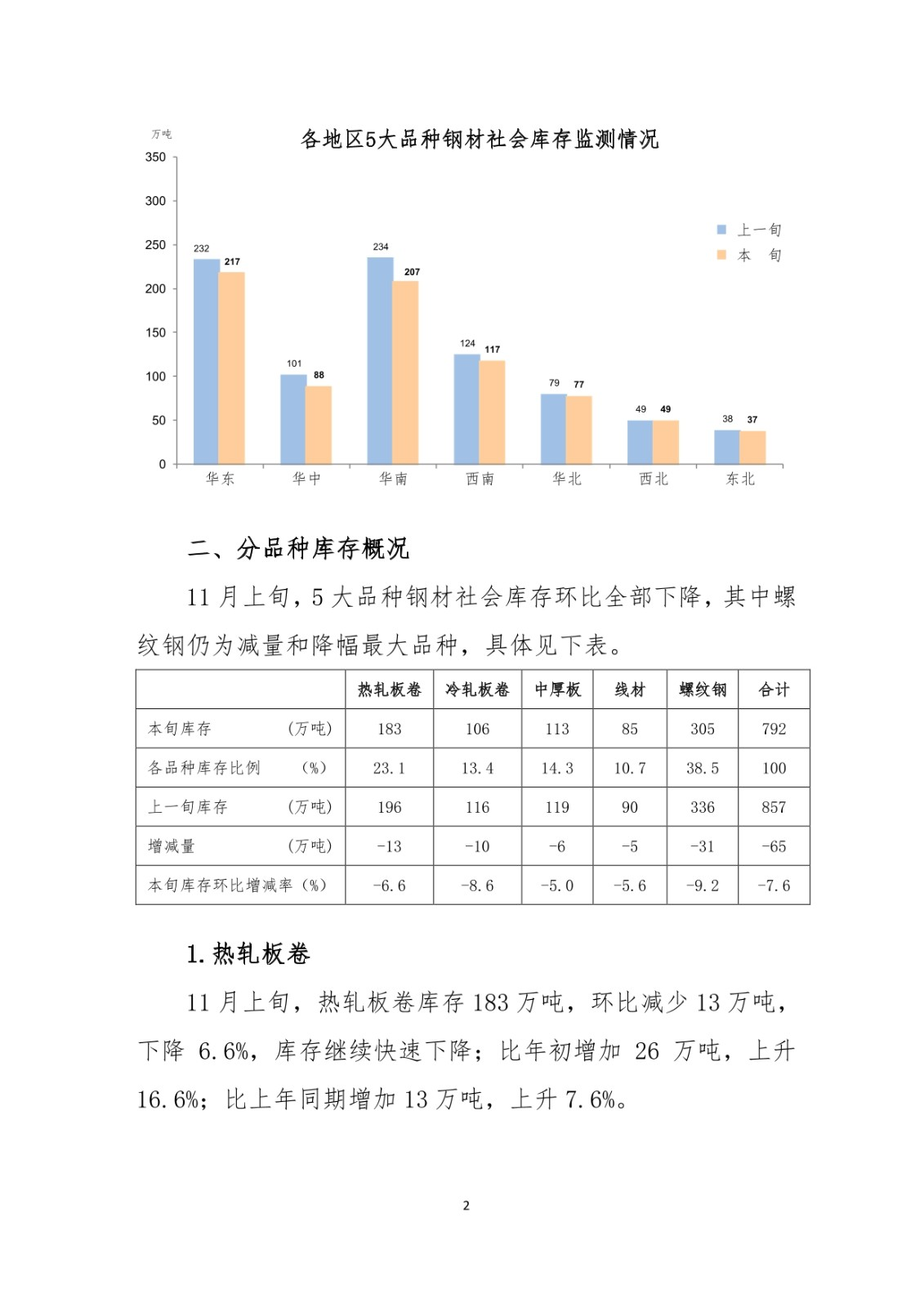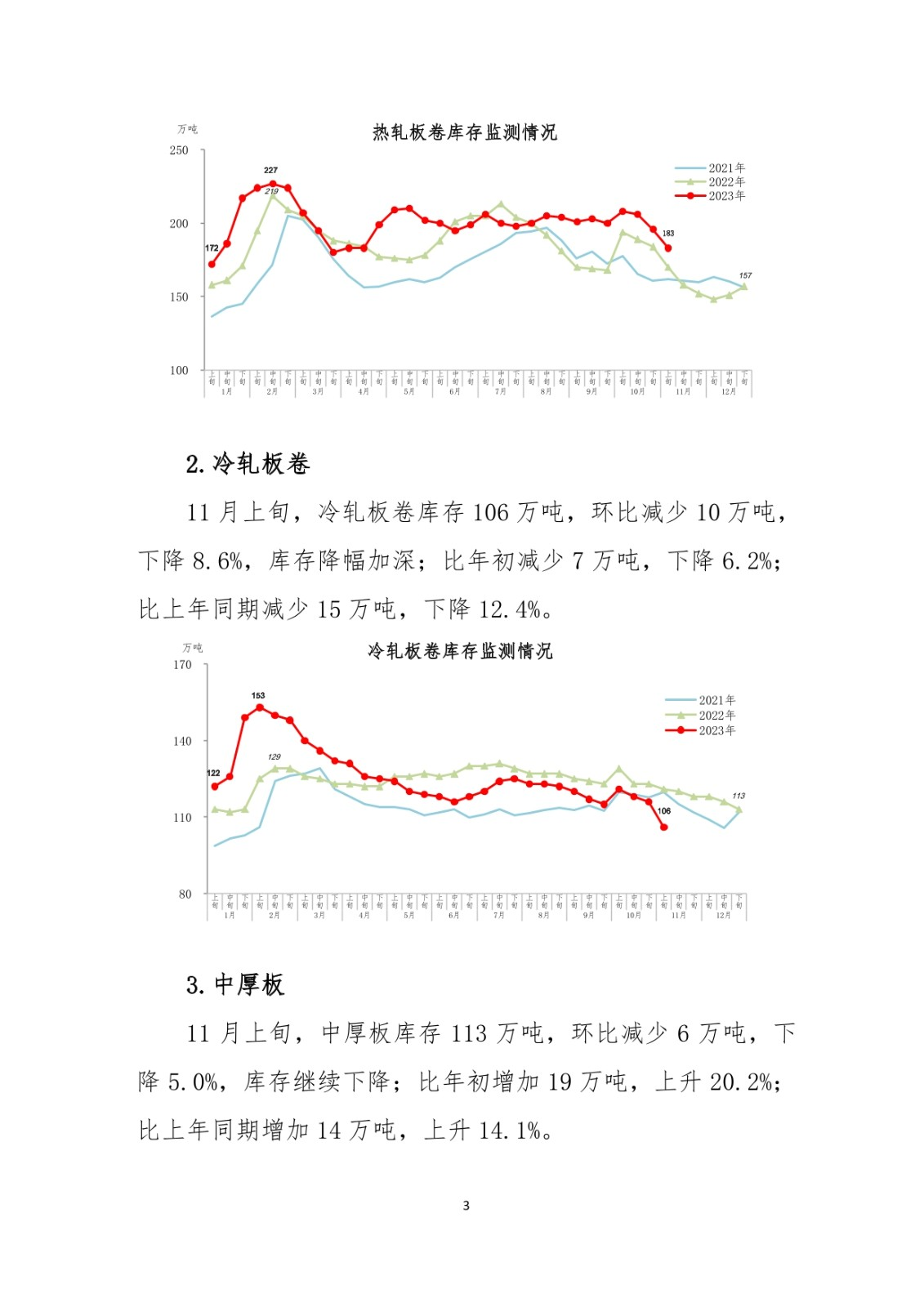摘要:2023年11月上旬钢材社会库存监测旬报