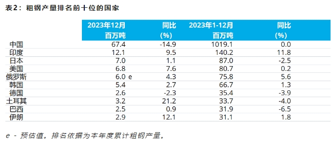 表3:2023年全年全球粗钢产量