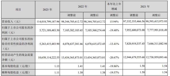 中信特钢披露年度报告,公司2023年实现营业收入1140.19亿元,同比增长15.94%;实现净利润57.21亿元,同比下降19.48%;基本每股收益1.13元。公司拟向全体股东每10股派发现金红利5.65元(含税)。