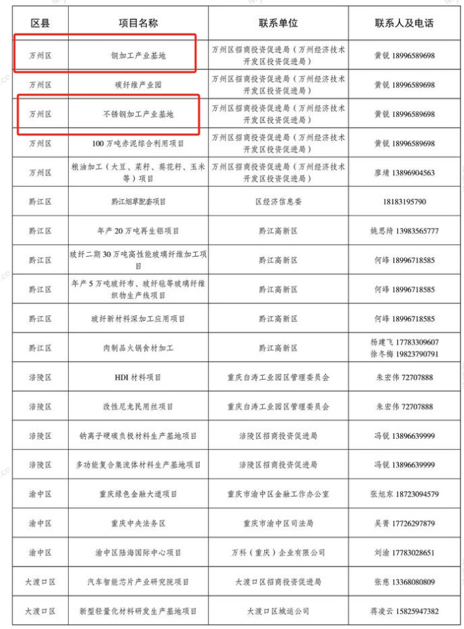 重庆发布产业高质量发展机会清单:钢铁项目2个