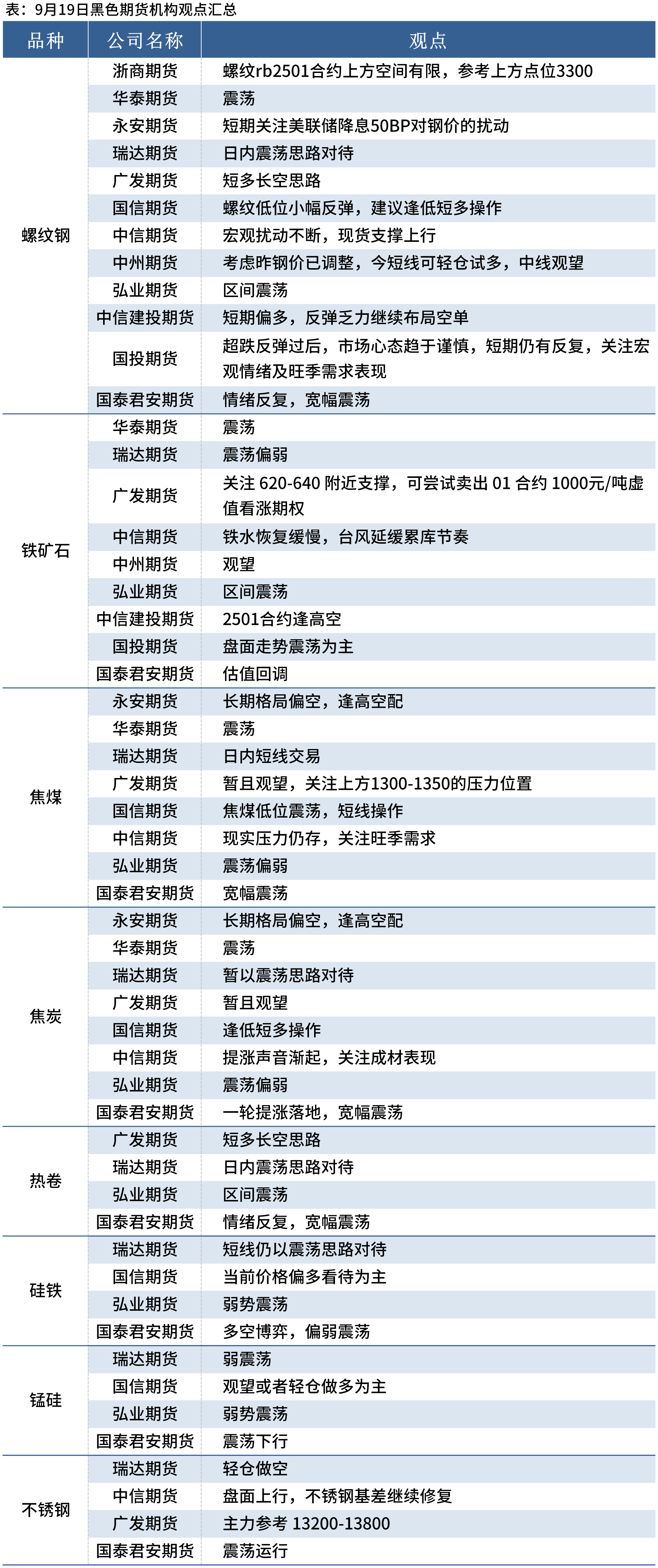 Mysteel统计9月19日12家期货机构操作策略,其中多数机构料螺纹钢震荡运行,铁矿石震荡运行,焦煤、焦炭震荡运行。具体汇总内容如下: