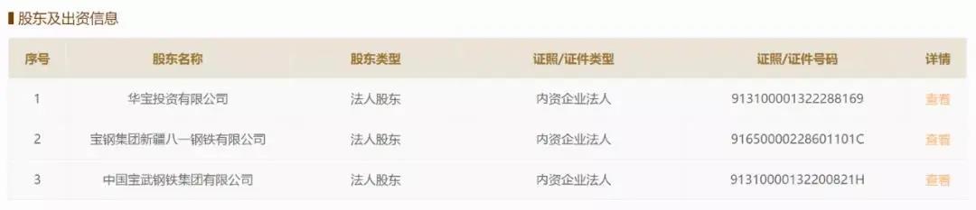 该公司由宝钢集团新疆八一钢铁有限公司、中国宝武钢铁集团有限公司、华宝投资有限公司共同出资10亿元成立,其成立或成为新疆钢铁产能整合的重要一步。