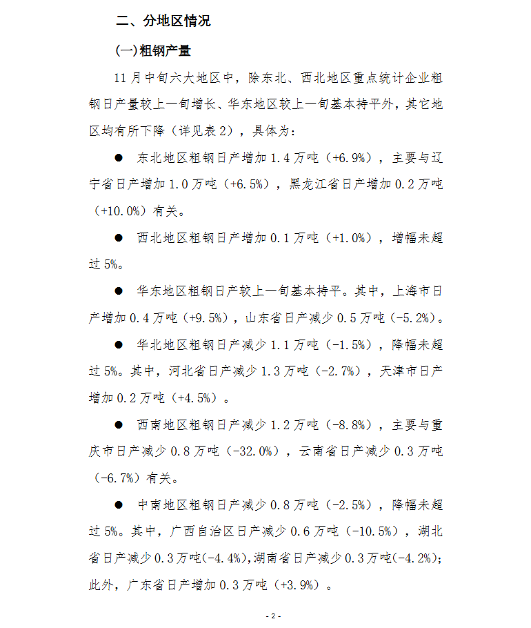 中钢协:11月中旬重点钢企粗钢日产208万吨