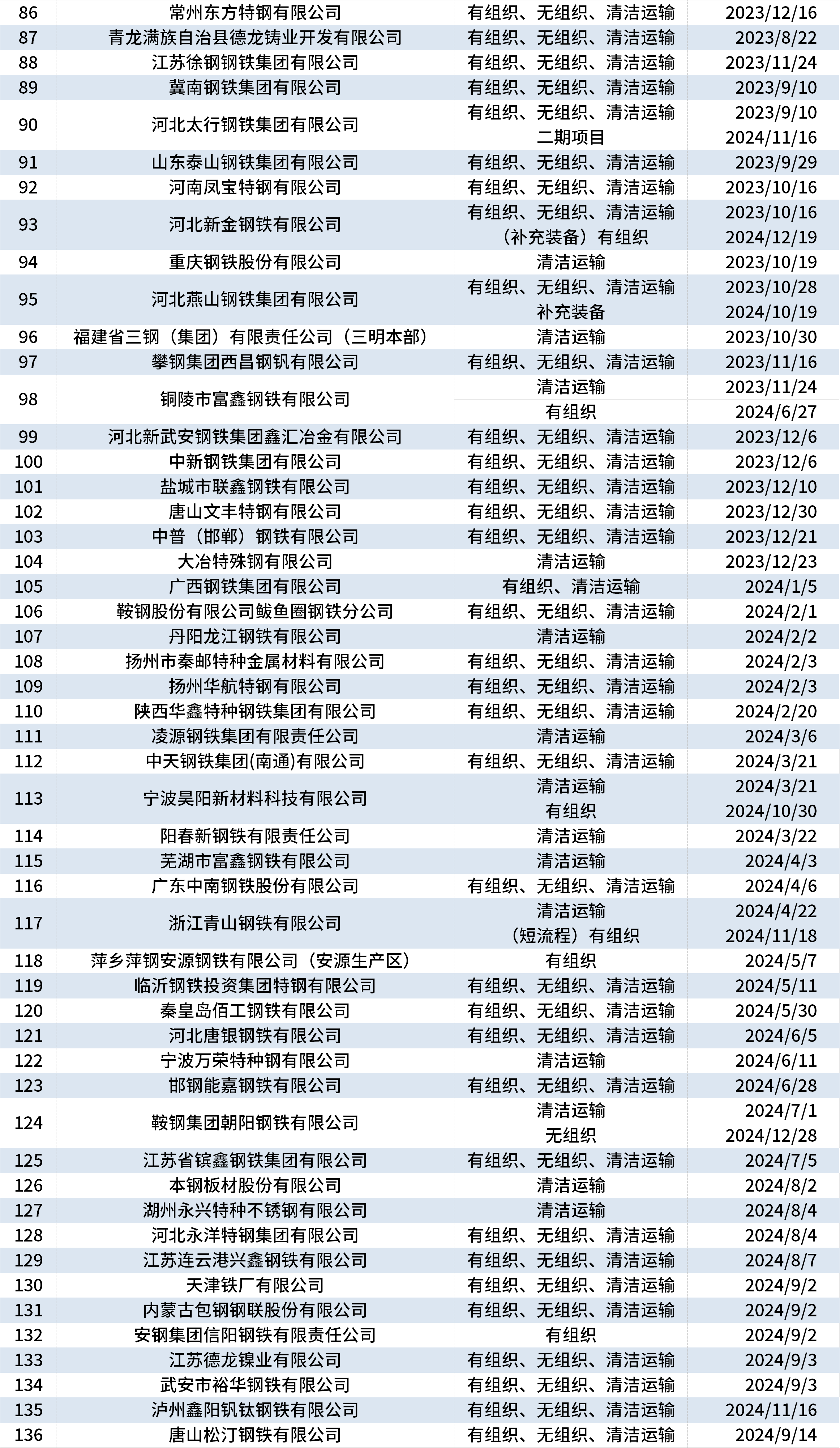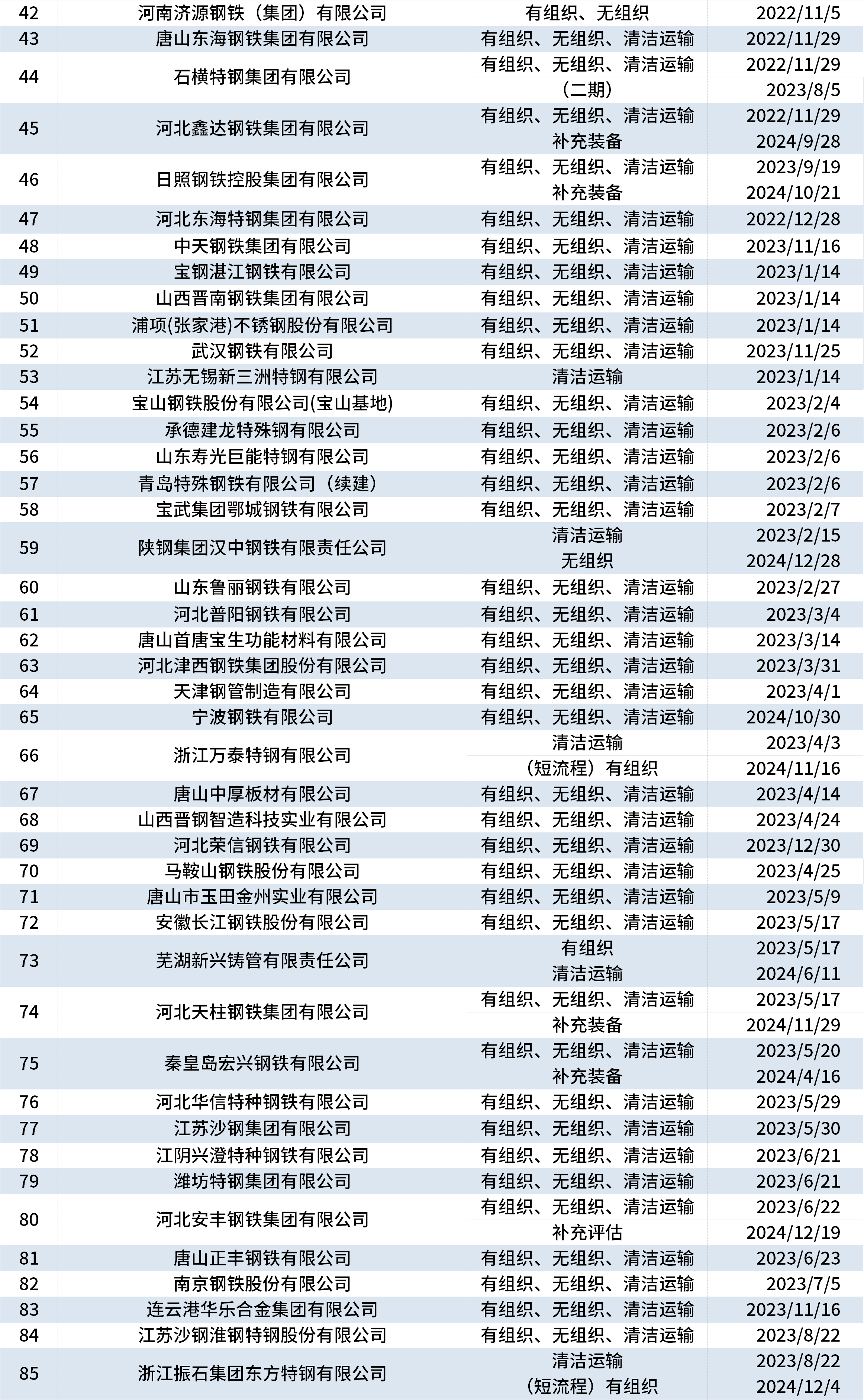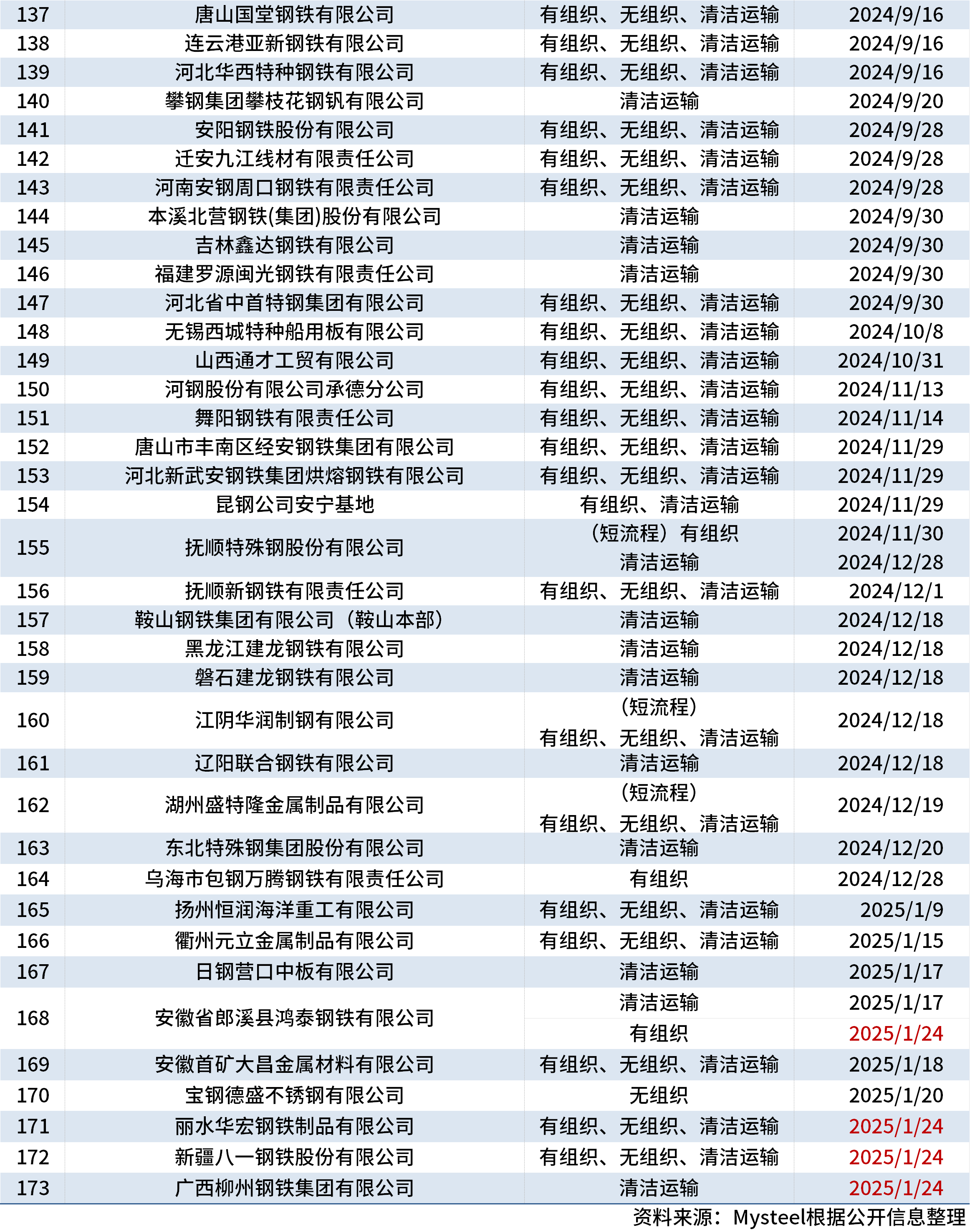 据中钢协网站消息,近日,有4家钢企进行超低排放改造和评估监测进展情况公示,为丽水华宏钢铁制品有限公司、新疆八一钢铁股份有限公司、广西柳州钢铁集团有限公司和安徽省郎溪县鸿泰钢铁有限公司。截至1月24日,已有173家钢铁企业在中钢协网站进行公示。
