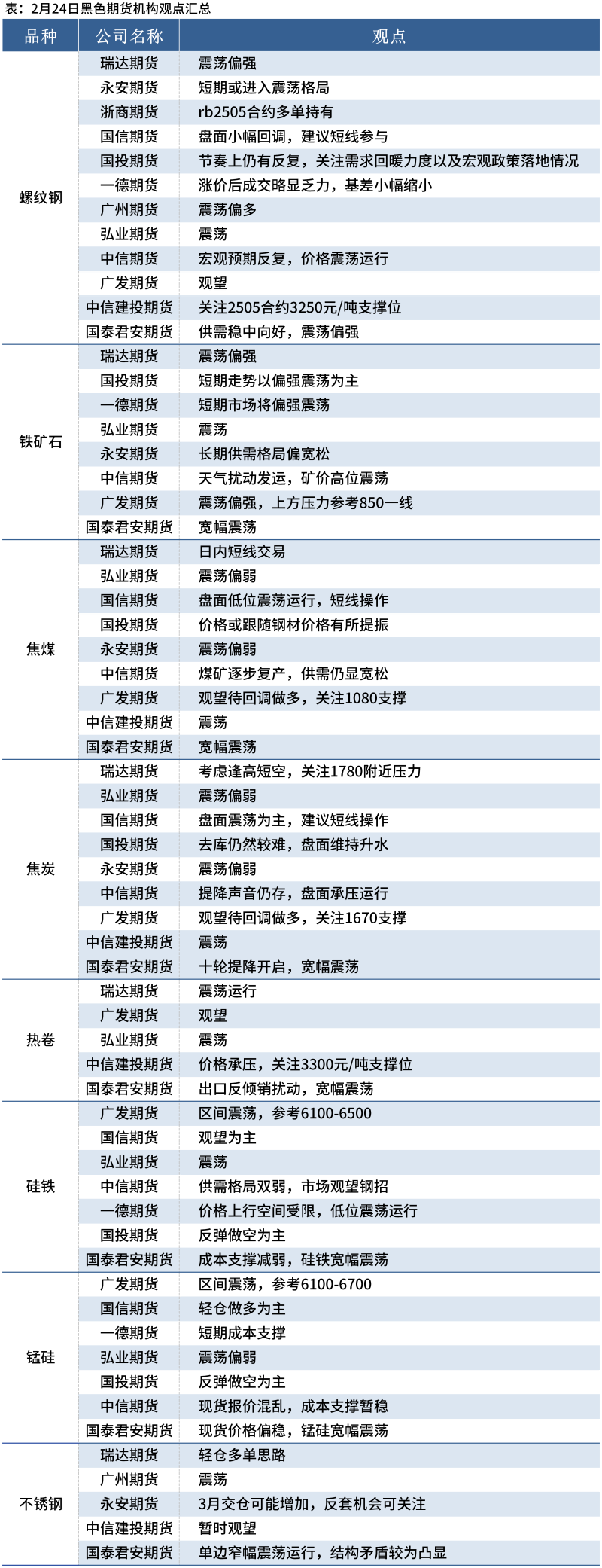 据Mysteel统计2月24日12家期货机构操作策略,其中多数机构料螺纹钢震荡运行,铁矿石震荡偏强。具体汇总内容如下: