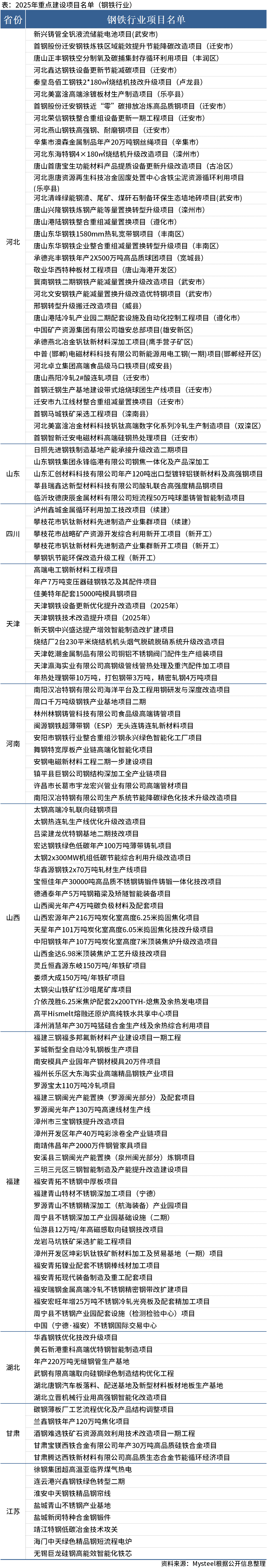 近日,河北、江苏、 山东、天津、河南、山西、福建、湖北、甘肃、四川公布2025年重点建设项目名单,其中,涉及钢铁行业相关项目127个。
