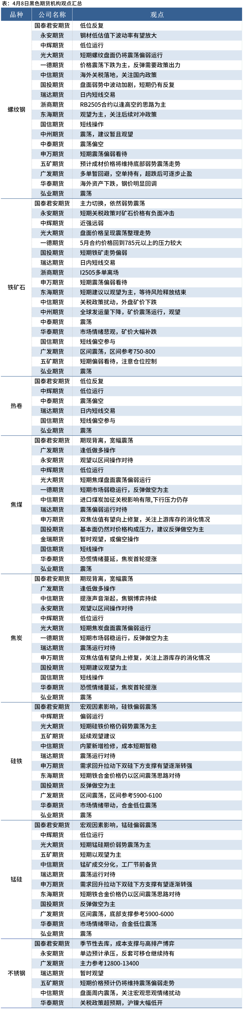 据Mysteel统计4月8日19家期货机构操作策略,其中多数机构料螺纹钢震荡运行,铁矿石震荡运行。具体汇总内容如下: