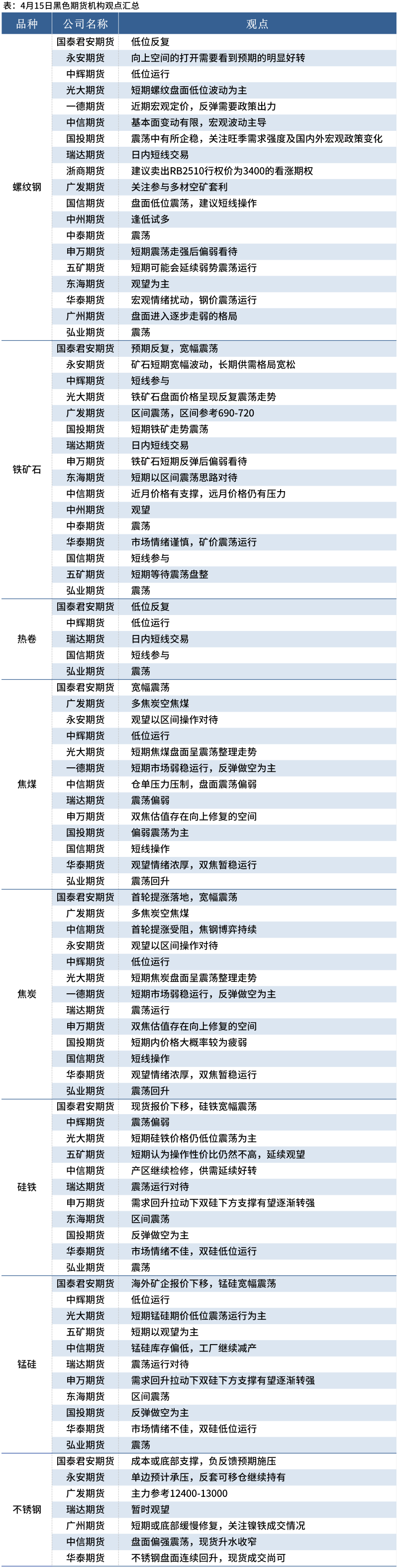 据Mysteel统计4月15日20家期货机构操作策略,其中多数机构料螺纹钢震荡运行,铁矿石震荡运行。具体汇总内容如下: