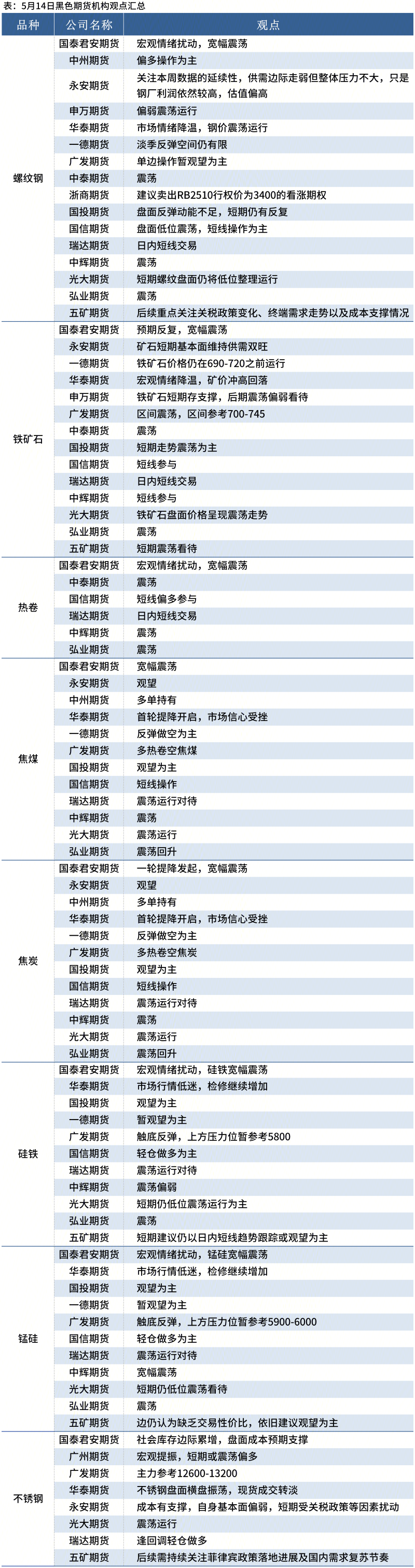 据Mysteel统计5月14日16家期货机构操作策略,其中多数机构料螺纹钢震荡运行,铁矿石震荡运行。具体汇总内容如下: