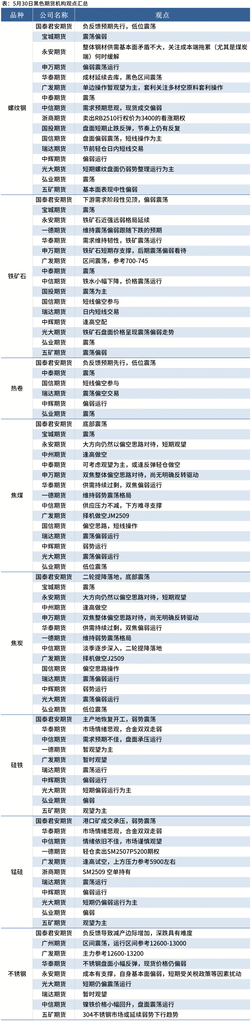 据Mysteel统计5月30日18家期货机构操作策略,其中多数机构料螺纹钢震荡偏弱,铁矿石震荡偏弱。具体汇总内容如下: