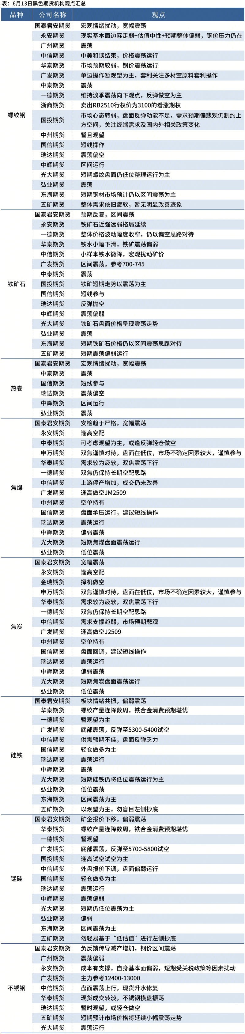 据Mysteel统计6月13日19家期货机构操作策略,其中多数机构料螺纹钢震荡运行,铁矿石震荡运行。具体汇总内容如下: