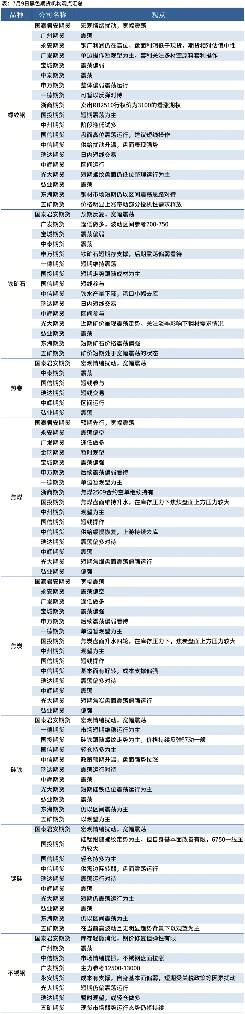据Mysteel统计7月9日17家期货机构操作策略,其中多数机构料螺纹钢震荡运行,铁矿石震荡运行。具体汇总内容如下: