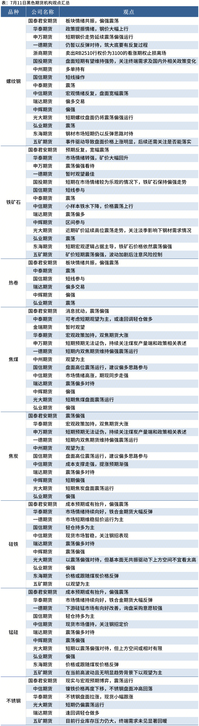 据Mysteel统计7月11日17家期货机构操作策略,其中多数机构料螺纹钢震荡偏强,铁矿石震荡偏强。具体汇总内容如下: