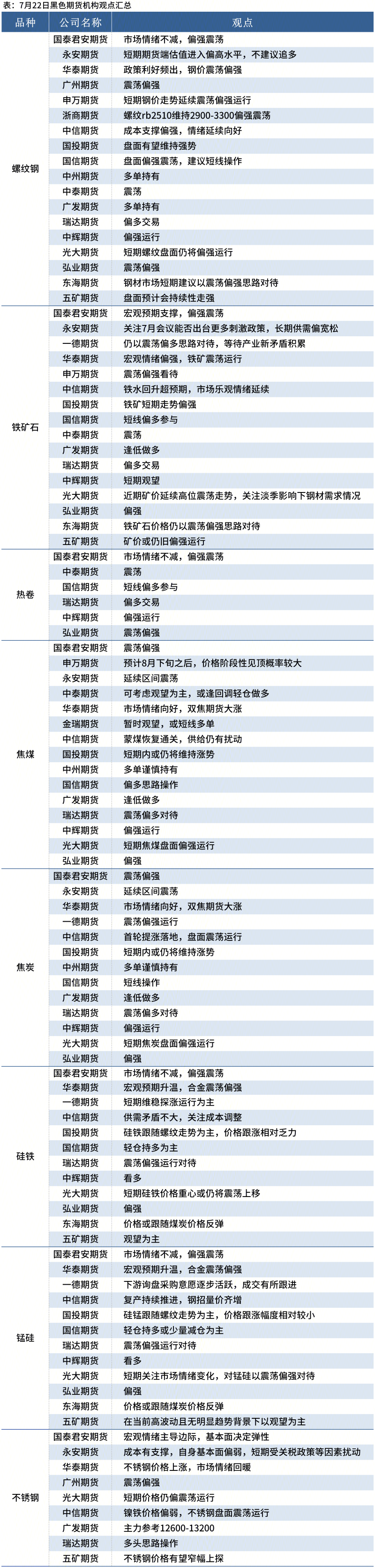 据Mysteel统计7月22日19家期货机构操作策略,其中多数机构料螺纹钢震荡偏强,铁矿石震荡偏强。具体汇总内容如下: