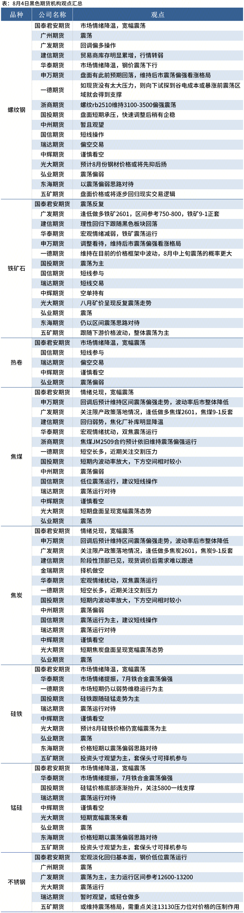 据Mysteel统计8月4日18家期货机构操作策略,其中多数机构料螺纹钢震荡运行,铁矿石震荡运行。具体汇总内容如下: