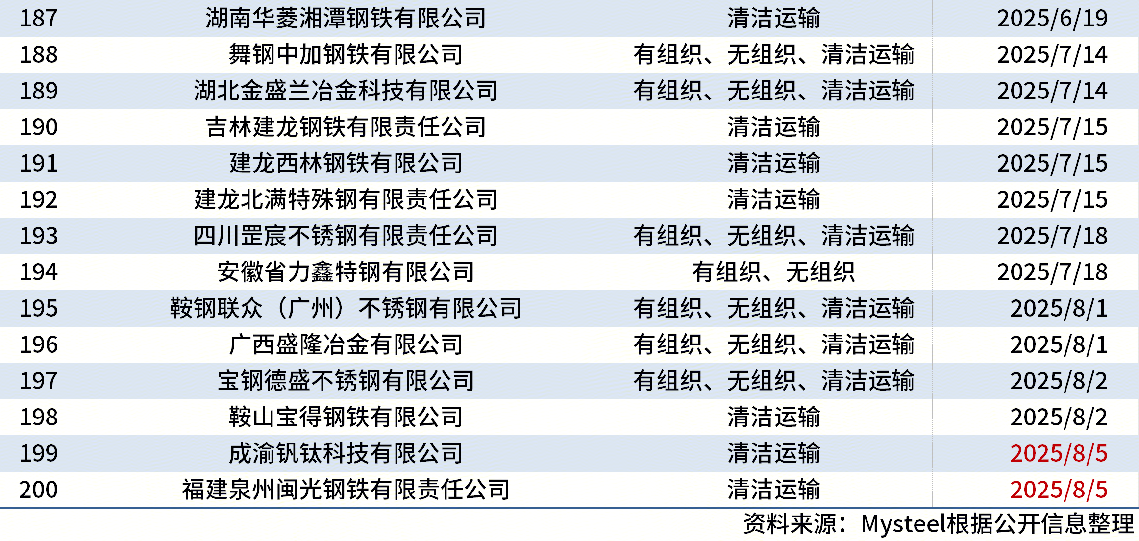 据中钢协网站消息,8月5日,有2家钢企进行超低排放改造和评估监测进展情况公示,为成渝钒钛科技有限公司、福建泉州闽光钢铁有限责任公司。截至目前,已有200家钢铁企业在中钢协网站进行公示。
