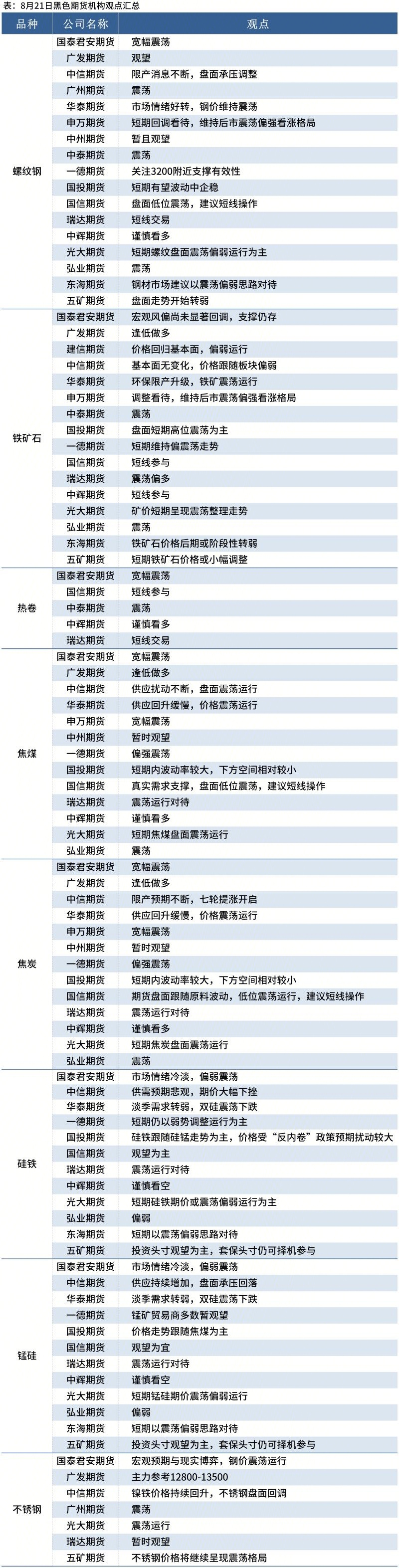 据Mysteel统计8月21日18家期货机构操作策略,其中多数机构料螺纹钢震荡运行,铁矿石震荡运行。具体汇总内容如下: