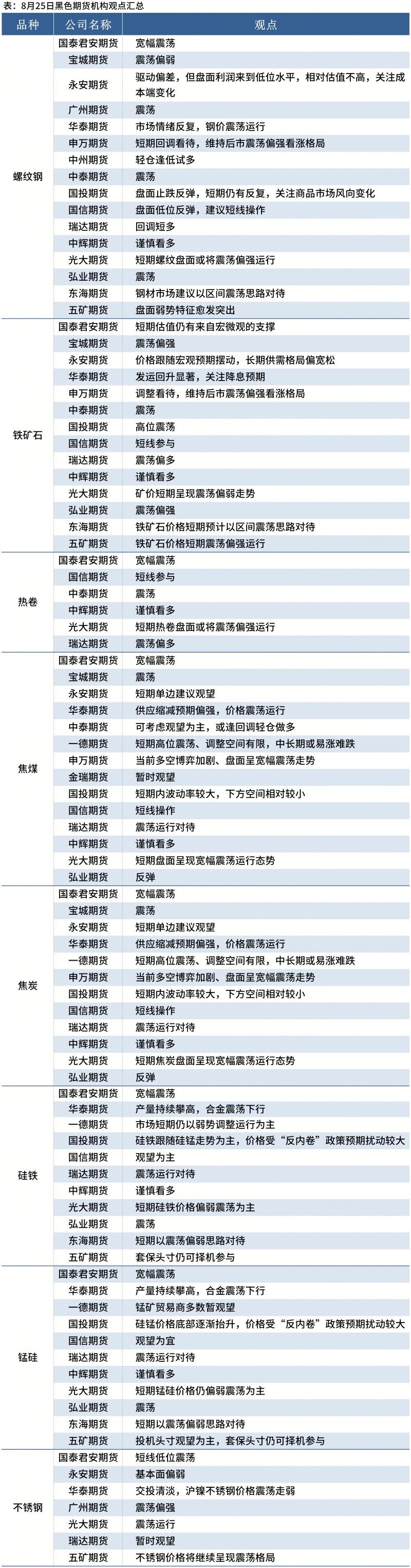 据Mysteel统计8月25日18家期货机构操作策略,其中多数机构料螺纹钢震荡运行,铁矿石震荡运行。具体汇总内容如下: