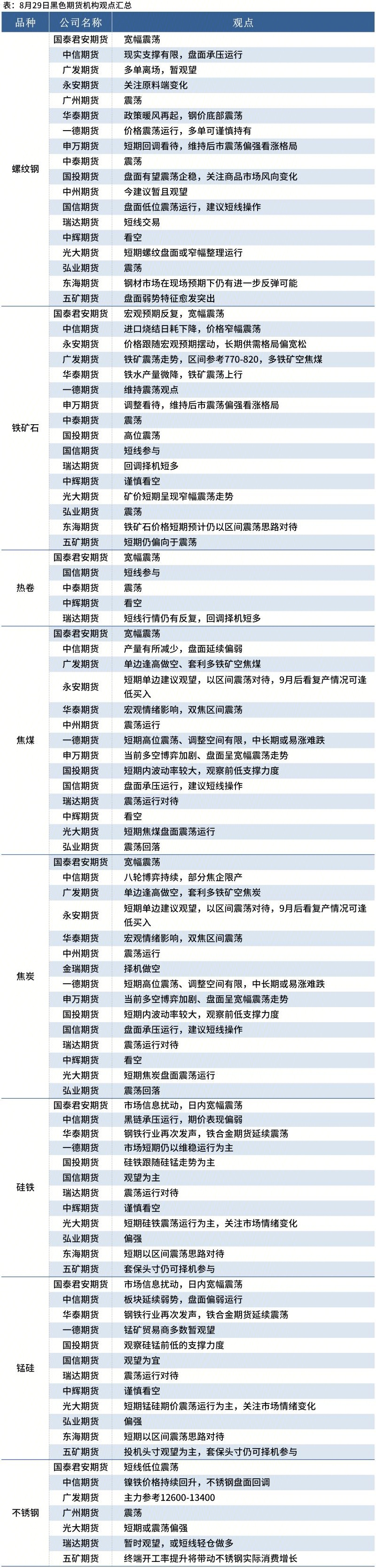 据Mysteel统计8月29日18家期货机构操作策略,其中多数机构料螺纹钢震荡运行,铁矿石震荡运行。具体汇总内容如下: