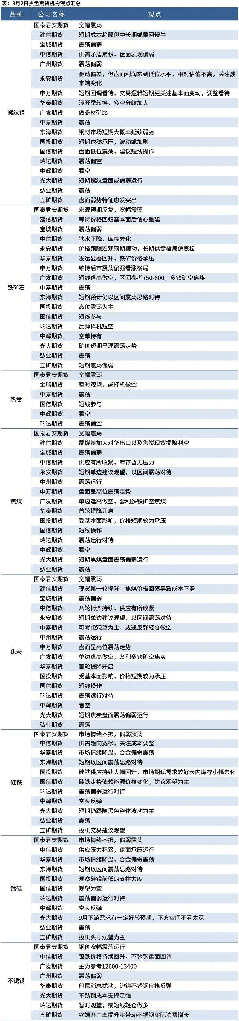 据Mysteel统计9月2日20家期货机构操作策略,其中多数机构料螺纹钢震荡偏弱,铁矿石震荡偏弱。具体汇总内容如下: