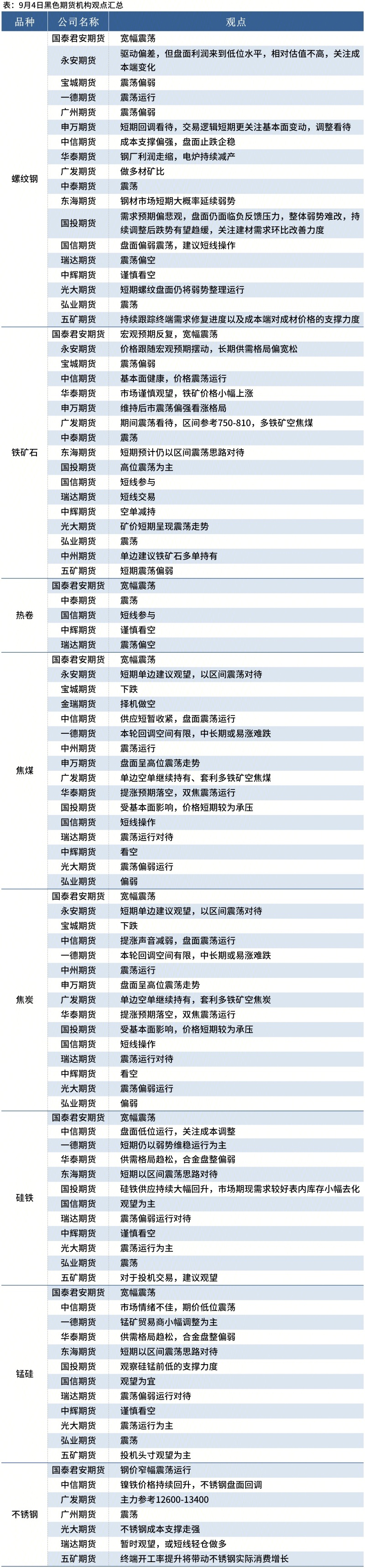 据Mysteel统计9月4日20家期货机构操作策略,其中多数机构料螺纹钢震荡偏弱,铁矿石震荡运行。具体汇总内容如下: