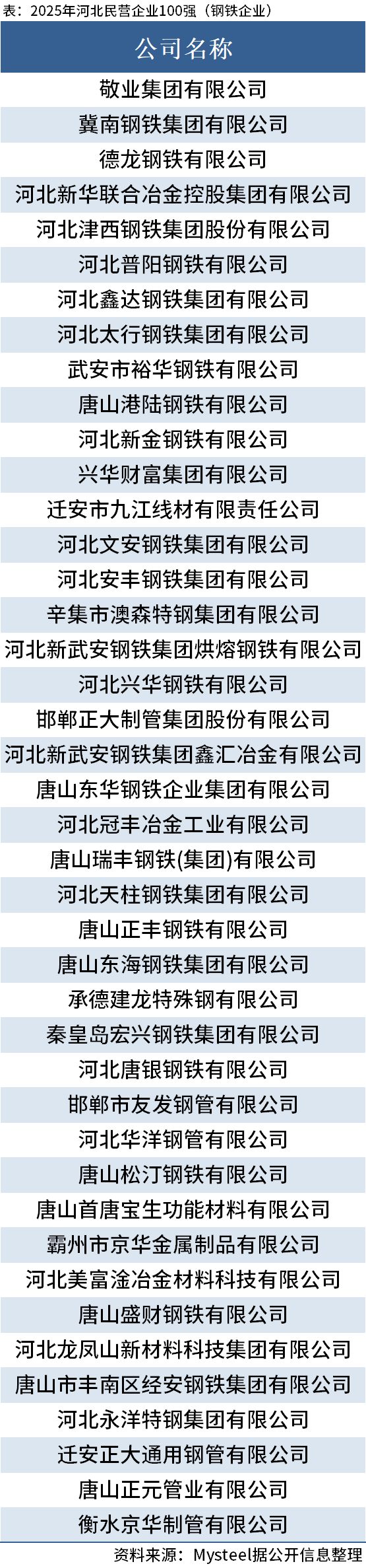 9月9日,河北省工商联在沧州举行2025年河北省民营企业100强发布会,发布2025河北省民营企业100强榜单。敬业集团、冀南钢铁集团、德龙钢铁包揽前三,新华联合冶金、津西钢铁、普阳钢铁、鑫达钢铁进前十。