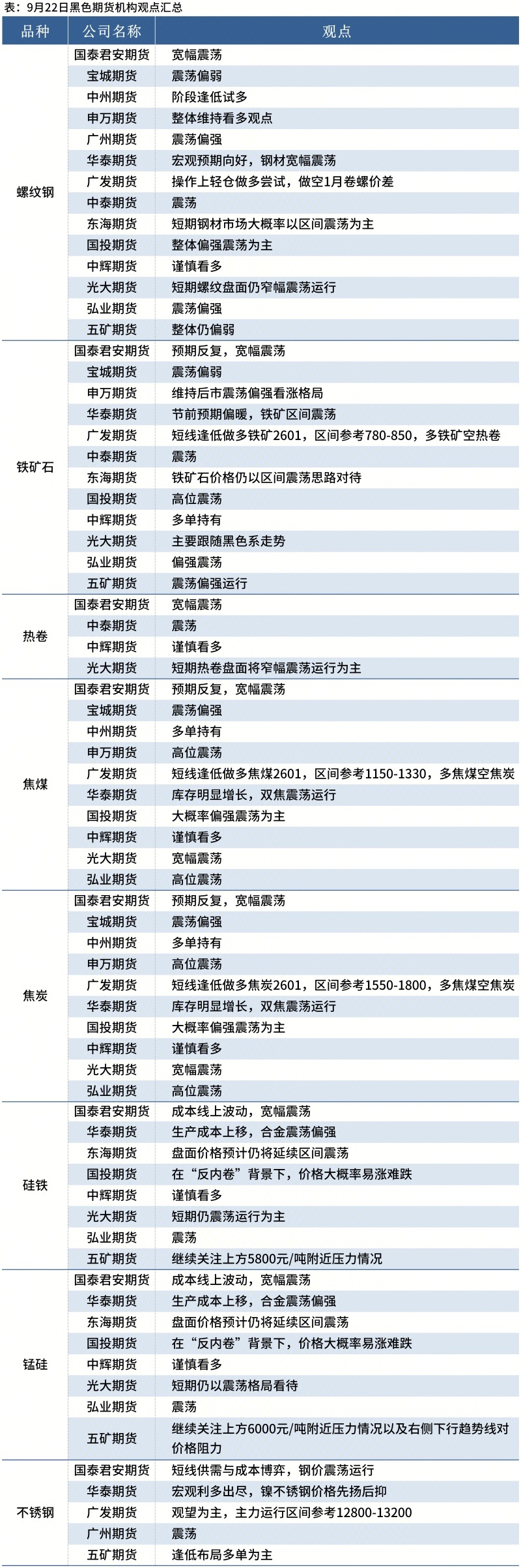 据Mysteel统计9月22日14家期货机构操作策略,其中多数机构料螺纹钢震荡运行,铁矿石震荡运行。具体汇总内容如下: