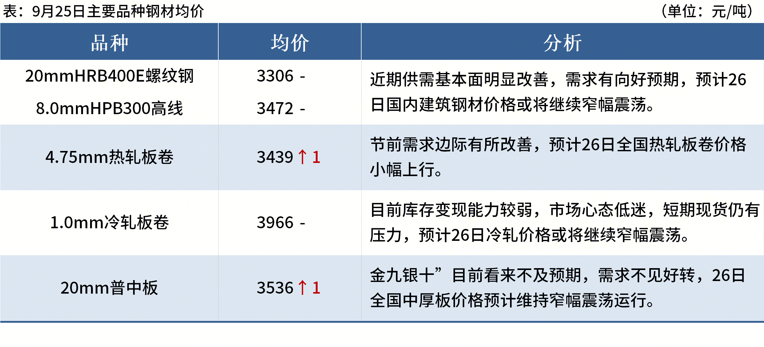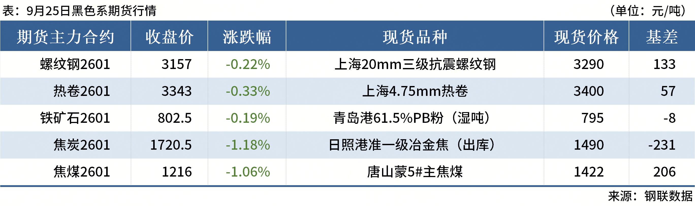 ◎9月25日,主流焦企提涨捣固焦炭50-55元/吨,顶装焦炭80-85元/吨。