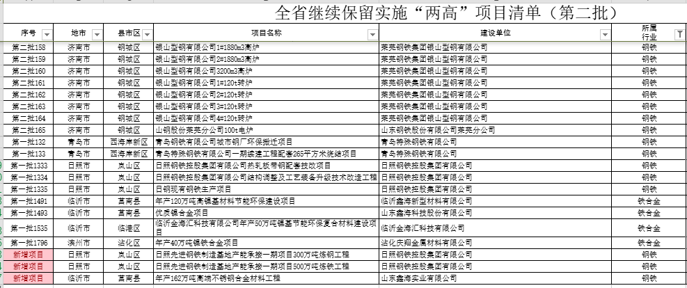 依据《山东省人民政府办公厅关于印发坚决遏制“两高”项目盲目发展的若干措施的通知》(鲁政办字〔2021〕98号)等有关规定,经过省市县三级联合审查,并经企业确认,全省第二批继续保留实施和关停退出“两高”项目清单经公示无异议,现予以公告