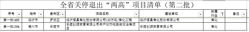 2.全省关停退出“两高”项目清单(第二批)