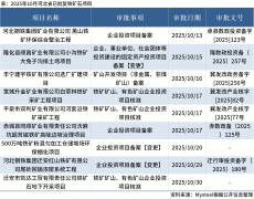 Mysteel不完全统计,2025年10月河北省共批复铁矿石相关项目9个,分别是3个铁矿矿山、有色矿山企业投资项目核准、4个企业投资项目备案或【变更】、1个企业、事业单位工业技术改造项目备案【变更】和1个矿山开发项目(非金属、非煤矿山)备案。