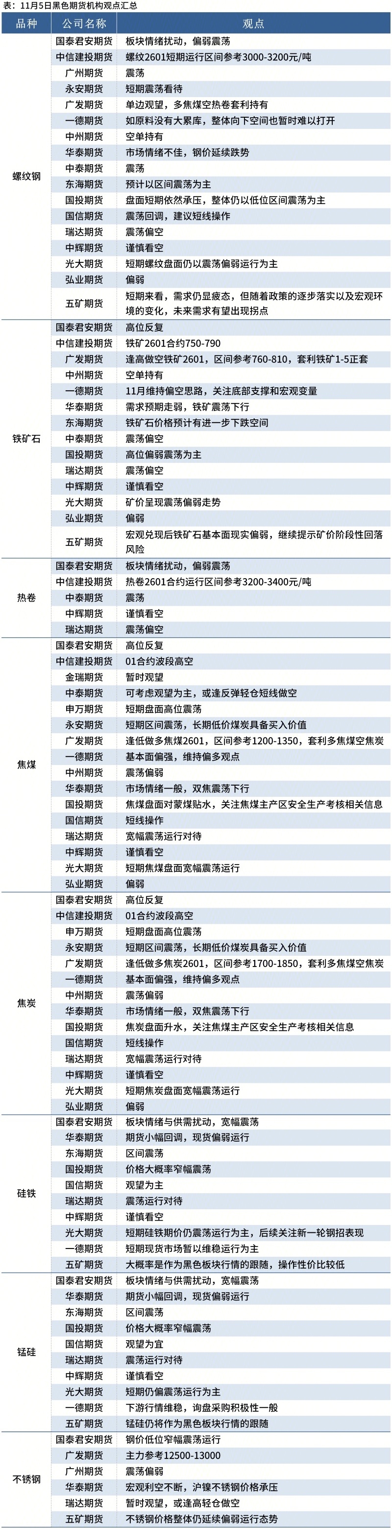 Mysteel统计11月5日19家期货机构操作策略,其中多数机构料螺纹钢震荡运行,铁矿石震荡偏弱。具体汇总内容如下: