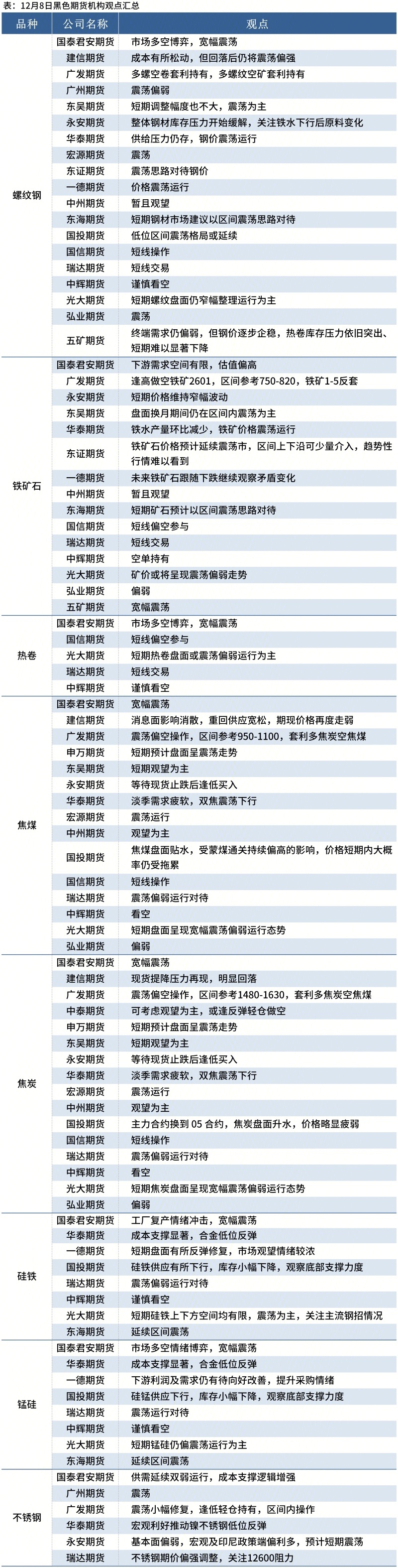 Mysteel统计12月8日20家期货机构操作策略,其中多数机构料螺纹钢震荡运行,铁矿石震荡运行。具体汇总内容如下: