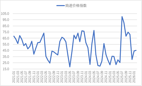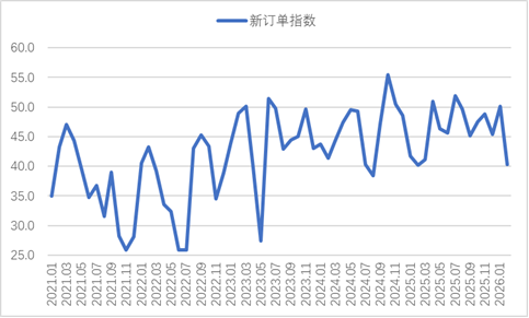 钢铁需求明显收缩,出口订单有所改善。2 月份,受春节假期影响,钢铁行业需求端明显下降。假期内下游建筑工地、制造业企业普遍停工放假,户外施工作业基本停滞,冬储需求也已全面进入收尾阶段,市场需求整体收缩。节后虽有 “十五五” 开局年市场对钢铁需求的向好预期,但工地复工在员工延迟返岗和气温继续偏低的情况下或将存在明显滞后期,需求启动需要时间。新订单指数为40.3%,环比下降9.9个百分点,指数为近12个月以来新低。出口方面,钢铁出口许可证新政落地后的阶段性影响逐步消化,加上国内因节日因素影响需求不足,企业选择向外出口,我国钢铁出口承压态势有所缓解。新出口订单为49.7%,环比上升11.8个百分点,接近50%荣枯线,结束此前连续3个月的环比回落态势。终端需求方面,据上海卓钢链了解,2月受春节假期影响,各行业对钢材的需求均有明显减弱。以沪市终端线螺采购为例,2月环比大幅下降71%,假期影响因素明显。