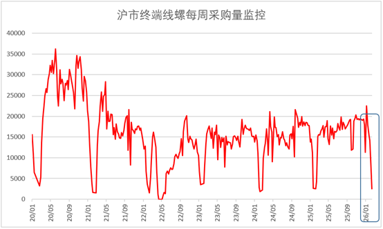 图3 2020年以来沪市终端线螺每周采购量监控数据变化情况