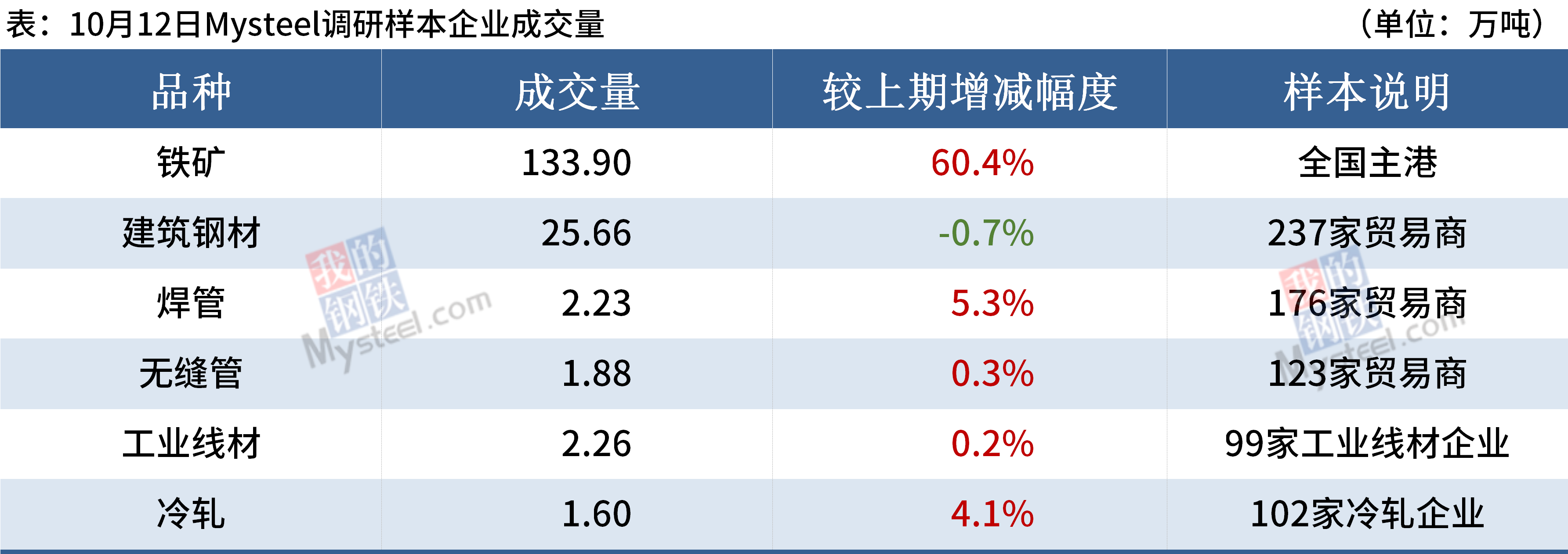 ◎截止10月10日,青岛港PB粉进口利润10.76元/吨,较节前增加6.18元/吨;青岛港卡粉进口利润43.58元/吨,较节前下降3.64元/吨;青岛港PB块进口利润22.23元/吨,较节前增加20.8元/吨。