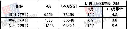 国家统计局数据显示:2020年9月我国粗钢日均产量308.5万吨,9月生铁日均产量252.6万吨,9月钢材日均产量393.5万吨。具体数据如下: