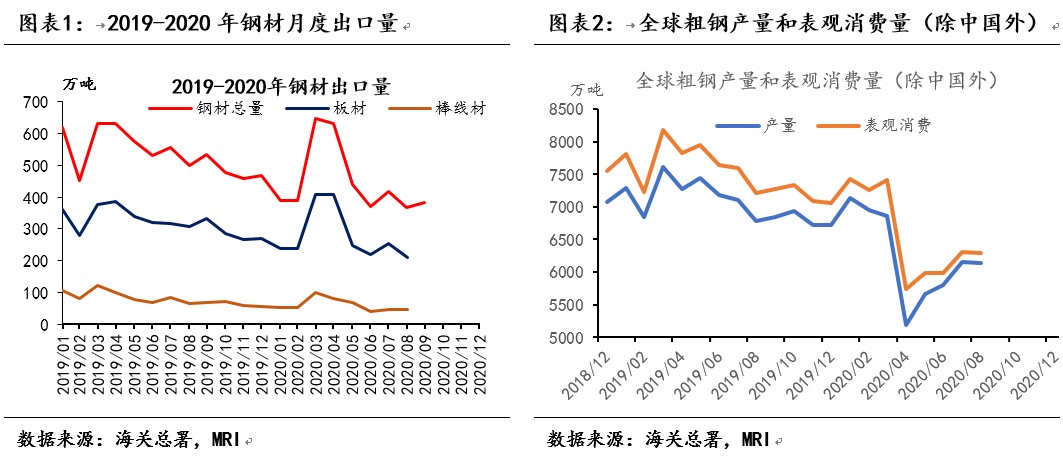 ◎ 从钢材进出口价差来看,9月国内钢材价格明显下跌,而国外钢材价格随需求复苏和原材料价格上涨推动持续上涨,各国钢材进出口报价随之水涨船高,国内外进出口价差进一步减小。由于季节性原因,四季度国内钢材价格易跌难涨,出口报价将下调,价格优势或再度显现。从目前的钢厂新接订单来看,据中物联钢铁物流专业委员会数据显示,9月份钢铁业新出口订单指数环比上升11.9个百分点至46.6%,我国钢材出口四季度或持续回升。预计全年钢材出口量在5500万吨左右。