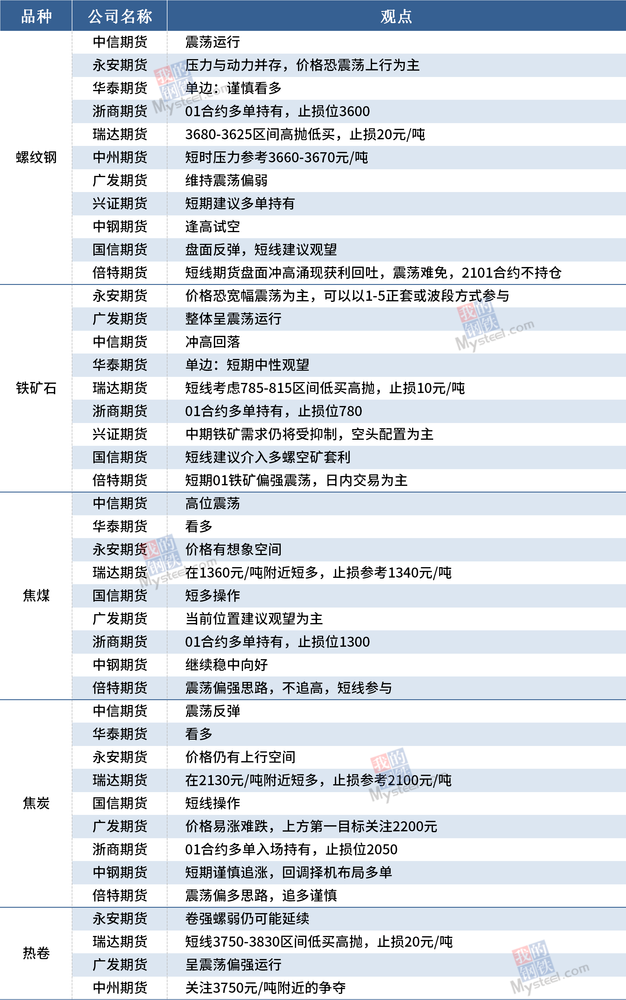 10月22日黑色期货机构观点汇总