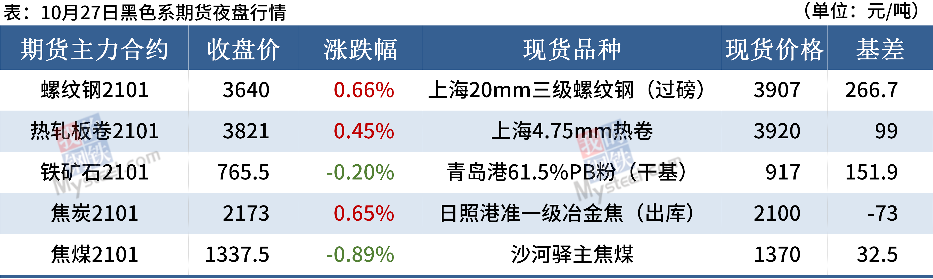 ◎ 四川德胜计划10月28日恢复一区生产,螺纹钢产量增加3500吨/天。
