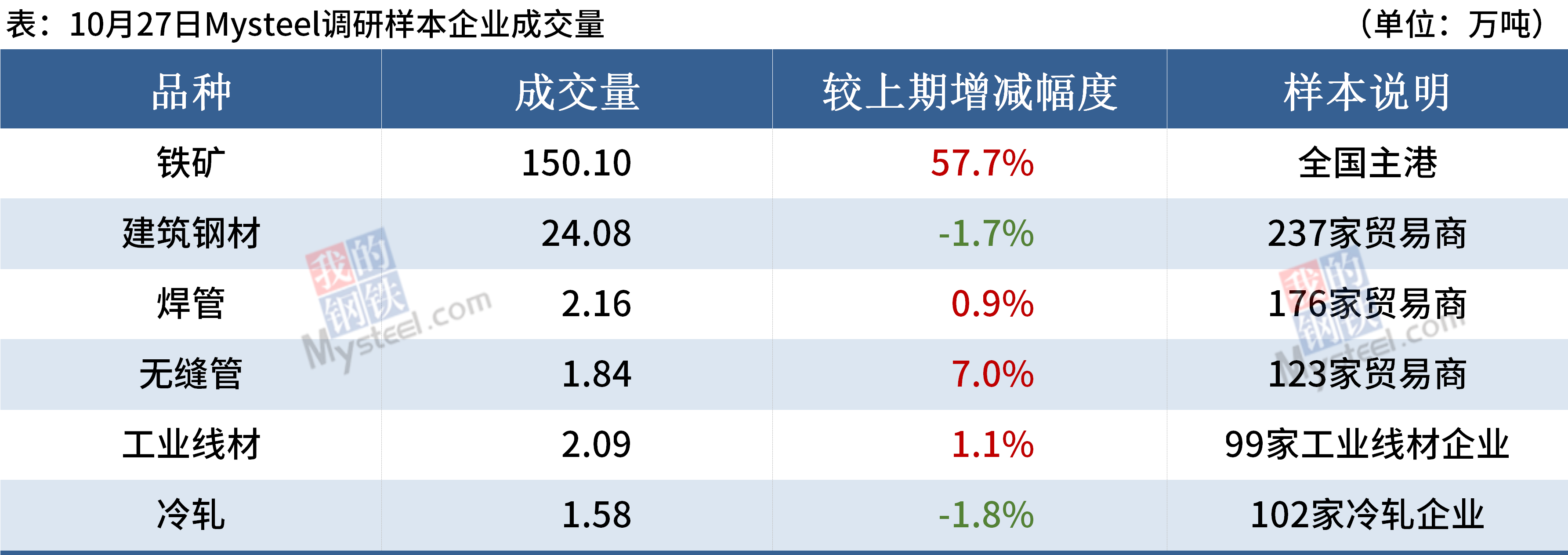 ◎ 山东闽源钢厂10月27日对一条白班棒线产线进行了检修,检修时间1天,预计总影响产量2000吨左右。
