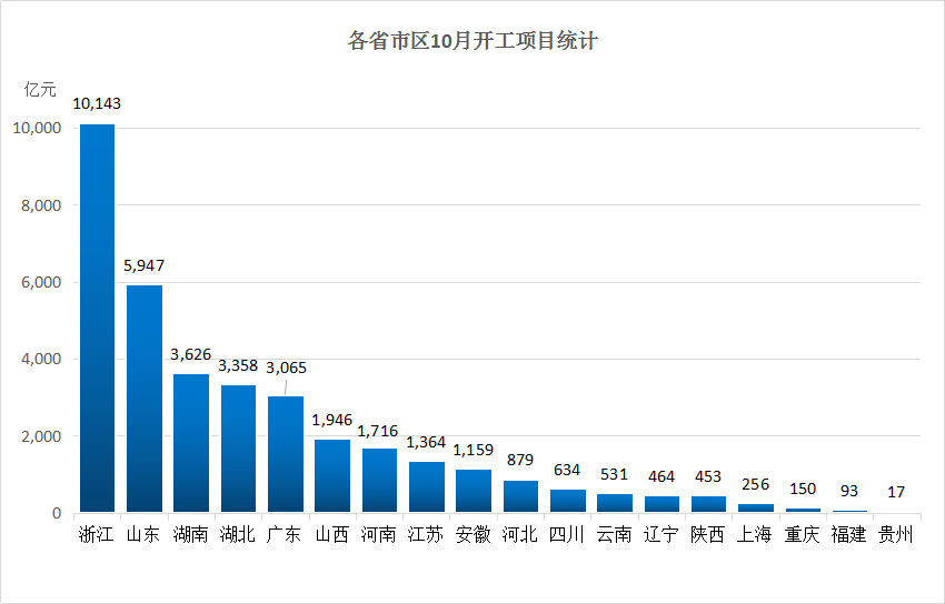 ◎ 据Mysteel不完全统计,2020年10月,全国各地共开工4504个重大项目,项目总投资金额为3.22万亿。10月份开工项目数量较9月环比减少了15.32%,但项目总投资环比增长16.01%,创年内新高。