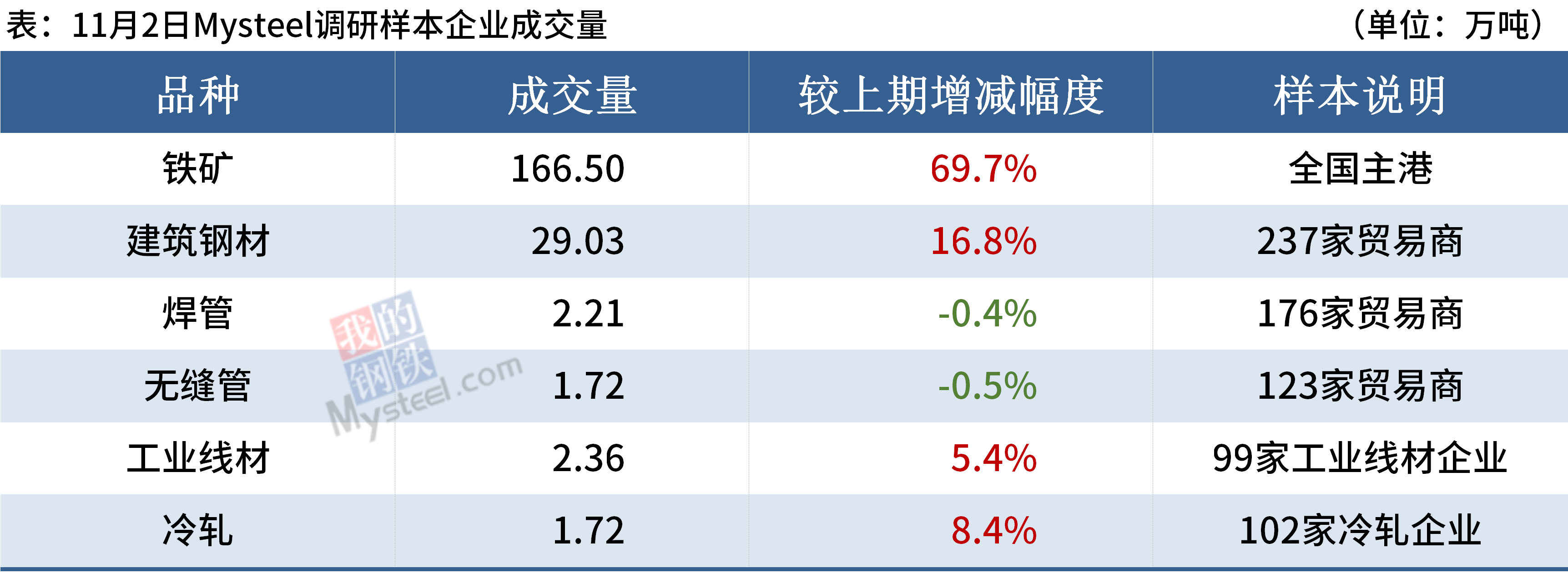 ◎ 截止10月29日,全国61家钢厂废钢库存总量250.32万吨,较上周降0.39万吨,降0.16%;周转天数10.3天,降0.2天。上周全国61家钢厂废钢日均到货量3416.83吨,较上周降0.79%;日均消耗量3536.67吨,较上周增0.78%。